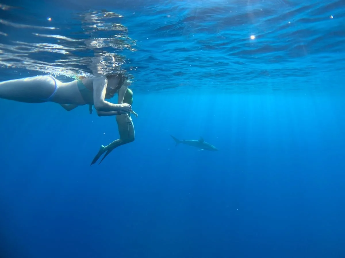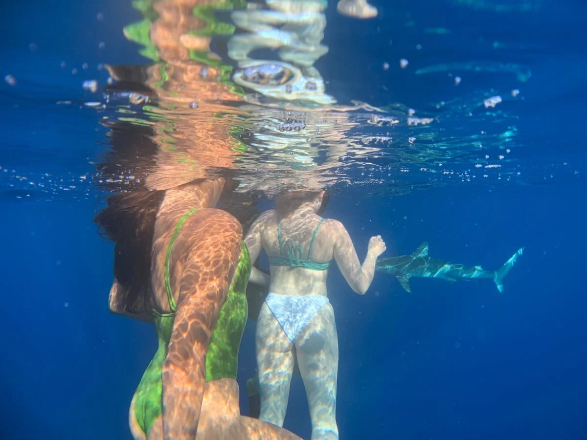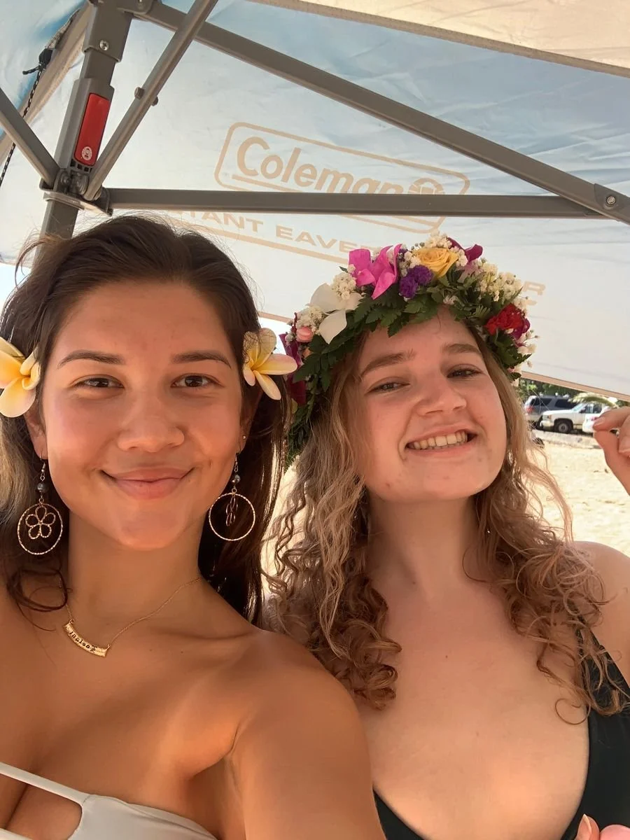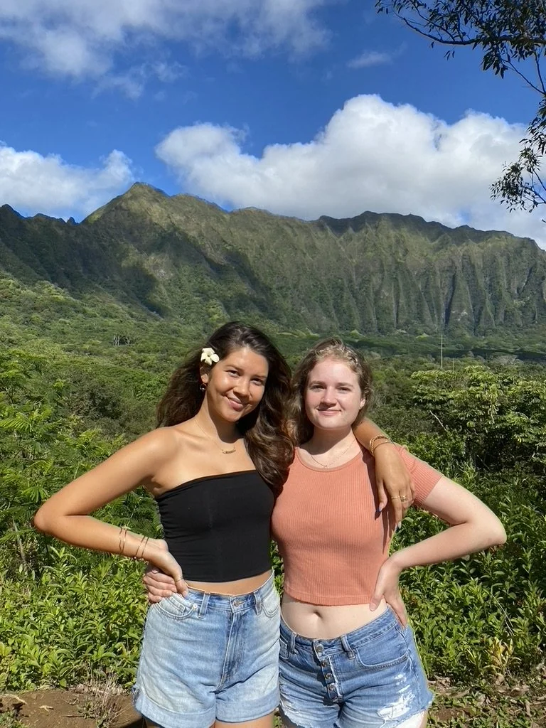 During the spring semester of our sophomore year, Mya stayed home in O’ahu because school was online. So of course, I had to see her! I flew out in April during our spring break for 8 days. The trip started off strong with a 5 am wake-up, a drive to the North Shore, and a quick boat trip a few miles offshore. The shark diving was so much fun, although sorta spooky looking down into the deep blue water and seeing sharks swimming around. Our guide was super funny and cute, which made the morning much more entertaining. After going shark diving, we went and got Banzai Bowls (my literal favourite food now). We met a peacock that tried to attack us, and treked through a beautiful coconut tree farm to take photos!